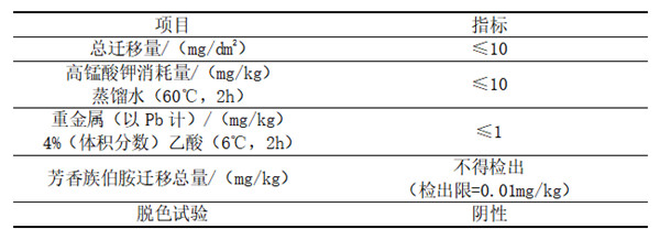 色澤正常,無異臭、不潔物等。遷移實驗所得浸泡液無渾濁、沉淀、異臭等感官性能的劣變。